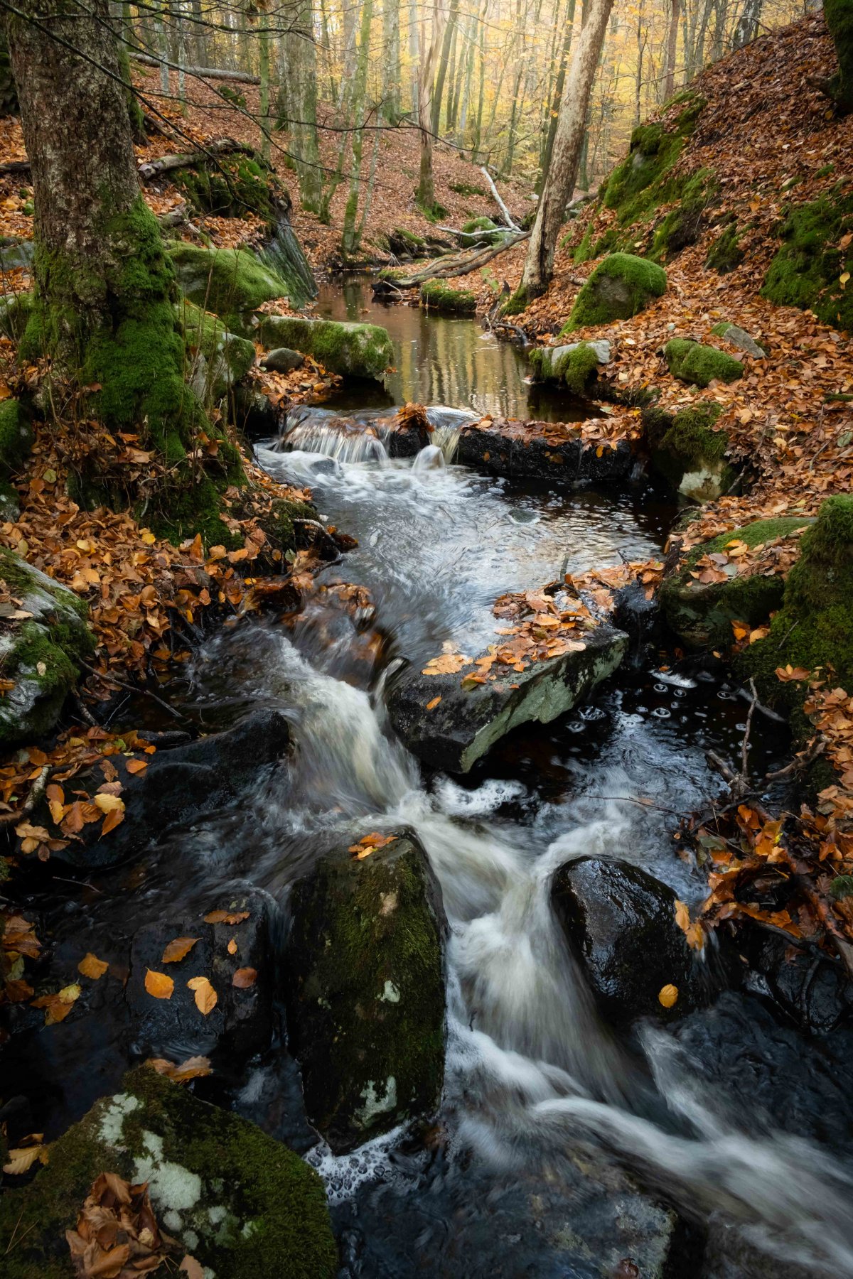 Bilden är tagen under en höstpromenad i Guddehjälm tillsammans med pudlingen. Det traditionella är ju att använda ett stativ när en fotar landskap, men jag är inte mycket för stativ... Så denna bild är tagen på frihand. Är mycket förstjust i hur vattnets rörelse finns kvar i bilden.